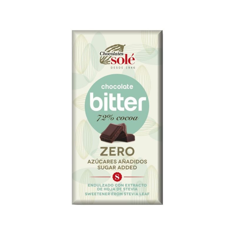 Chocolates Sole Ciocolata amaruie cu stevie fara zahar 72% cacao, 100g